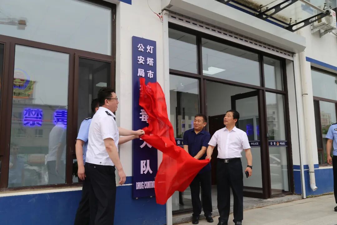 6月26日上午,灯塔市禁毒委员会办公室、社区戒毒康复中心新址启动仪式举行,灯塔市委常委、政法委书记马春山,灯塔市副市长、市公安局局长明闯,灯塔市人民检察院党组书记、检察长詹克辉出席启动仪式。
